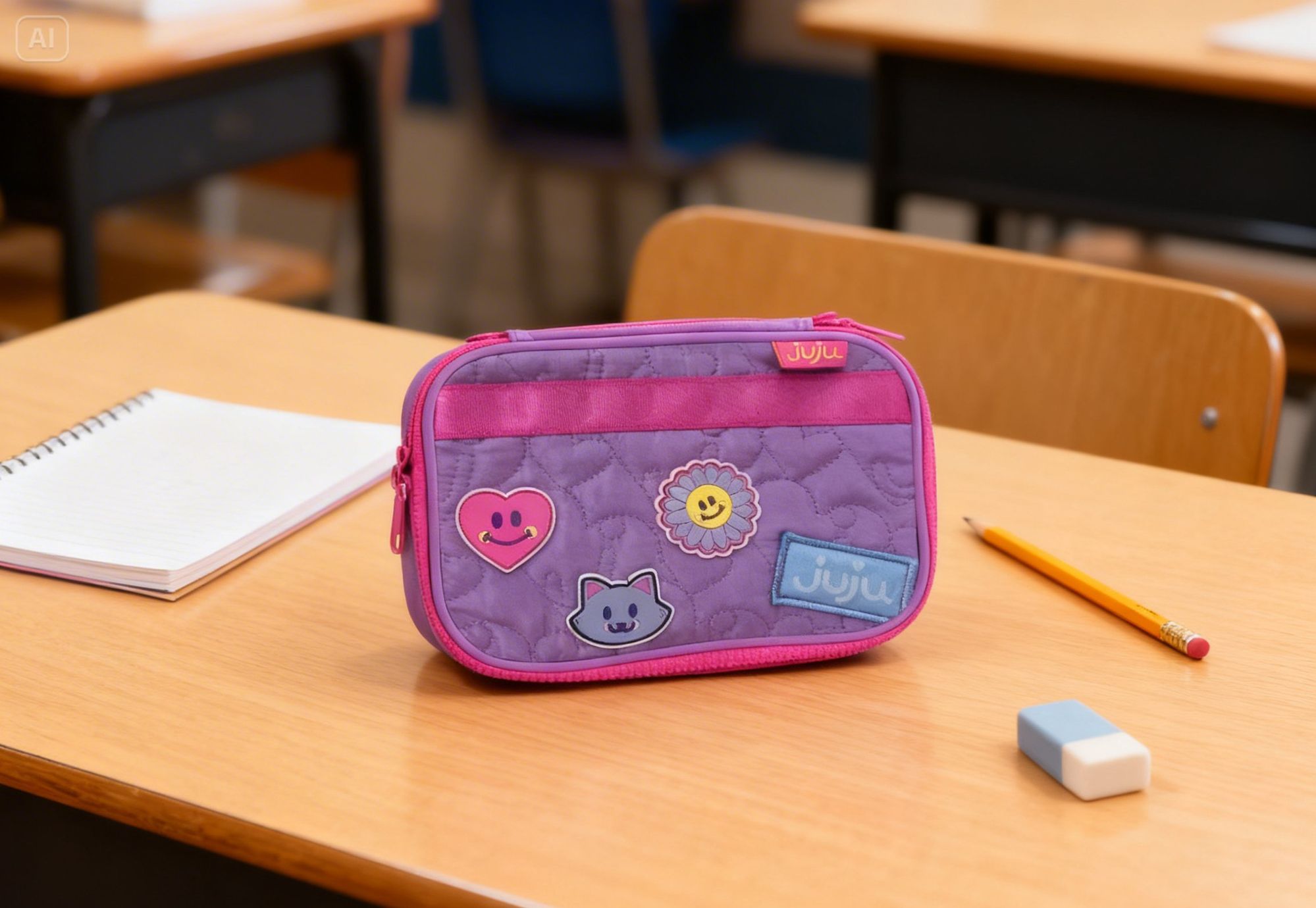 Fabricado com materiais resistentes e acabamento de qualidade, o estojo escolar Juju Teófilo conta com fechamento em zíper, garantindo segurança e praticidade para o uso diário na escola, cursos ou atividades do dia a dia.