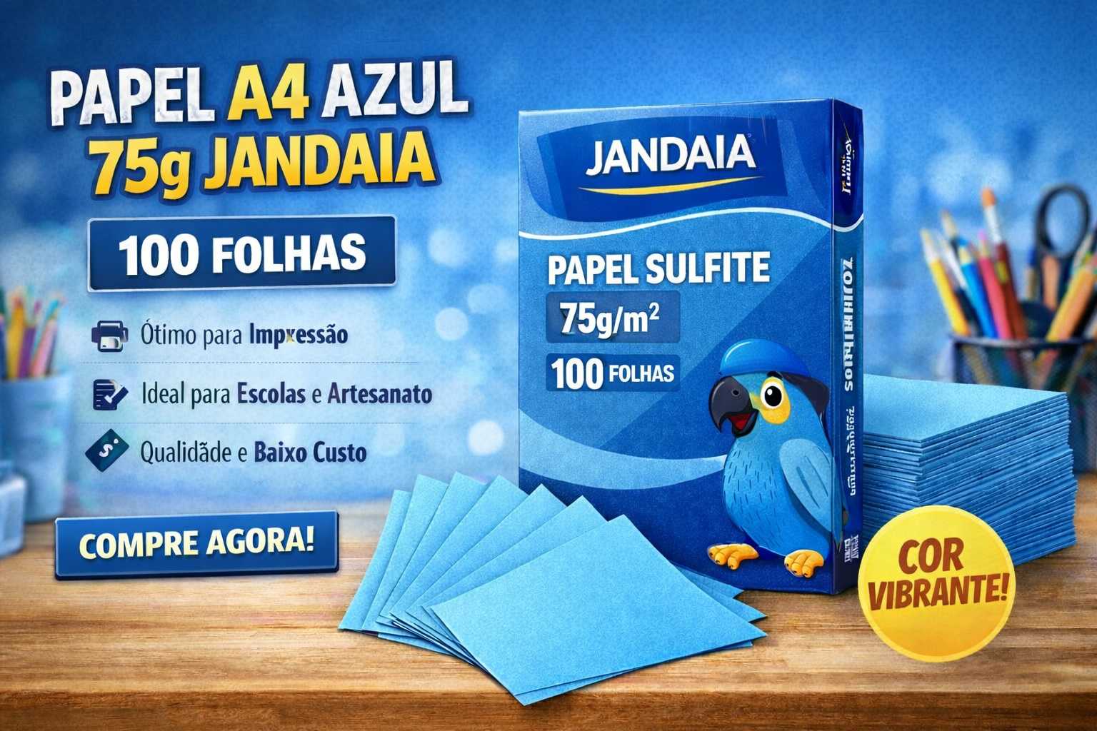 O papel A4 azul Jandaia 75g com 100 folhas é perfeito para quem deseja destacar documentos e projetos com profissionalismo e criatividade. Produzido pela marca Jandaia, oferece excelente desempenho em impressoras jato de tinta e laser, garantindo impressões nítidas e sem falhas.