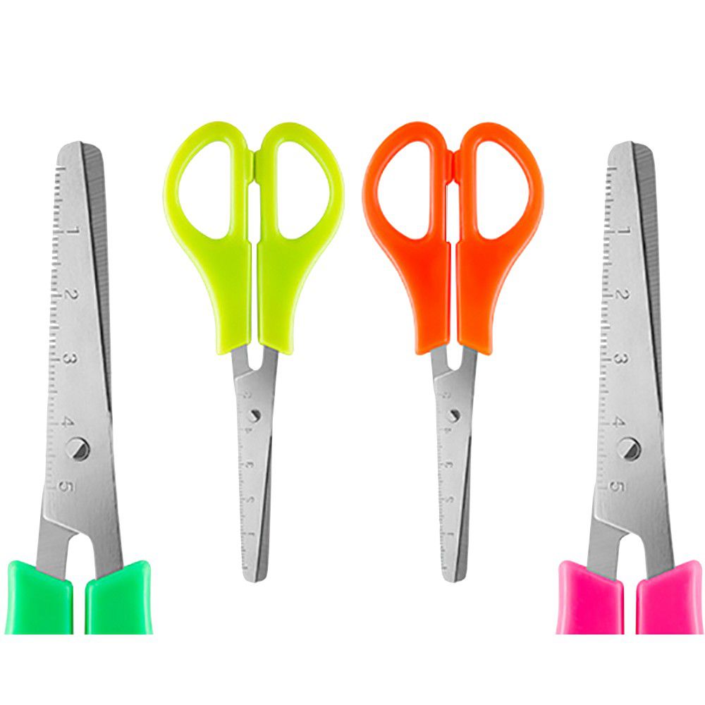 Suas lâminas em aço inoxidável garantem resistência à corrosão e excelente desempenho no corte de papéis, cartolinas e outros materiais leves. O cabo plástico em cores sortidas é anatômico e confortável, facilitando o manuseio por crianças e adultos.